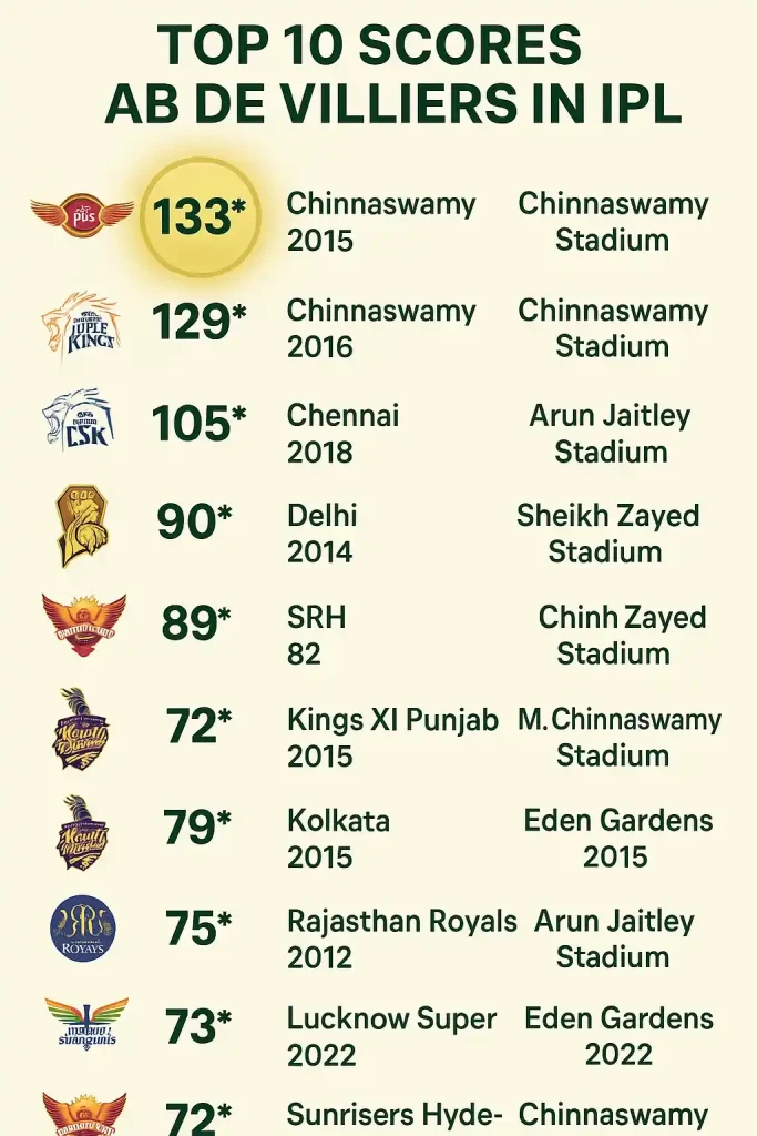 His highest score in the IPL isn’t just 133. It’s a memory that fans of all teams — not just RCB — remember. Because cricket, even in franchise formats, is still about moments. And no one — not Gayle, not Warner, not Kohli — made moments with the same rhythm, unpredictability, and freedom as AB.